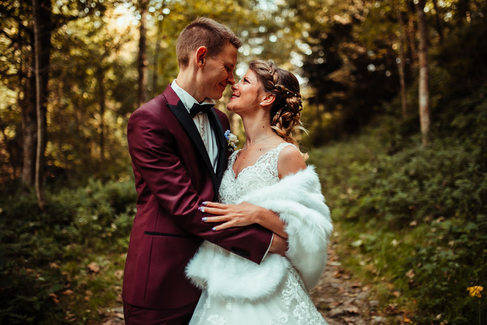 L’avantage de vivre au cœur du Pilat c’est que nous manquons pas de jolis spots pour la séance couple. Il y a beaucoup d’émotions dans ce sous bois, je n’entends plus un bruit, juste le souffle coupé du marié ! C’est mon moment préféré, je vous kidnappe pour quelques minutes juste pour moi. Je vous vois vibrer, rire et vous aimer .