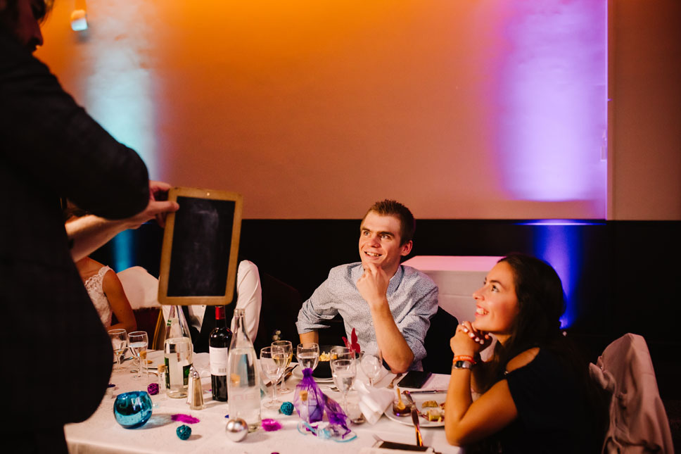 Qui dit mariage en octobre, dit nuit très tôt ! Qu’importe, le cocktail bat son plein sur les terrasses du Casino du Lion Blanc à Saint-Galmier. La salle cocooning attend avec impatience tous les invités. Nous sommes bien accompagnés, durant la soirée nous retrouvons Tristan le magicien de la soirée, mais aussi Mixelle pour le son et la lumière. Je me suis sentie entourée d’une grande famille. Merci la team pour votre bonne humeur.